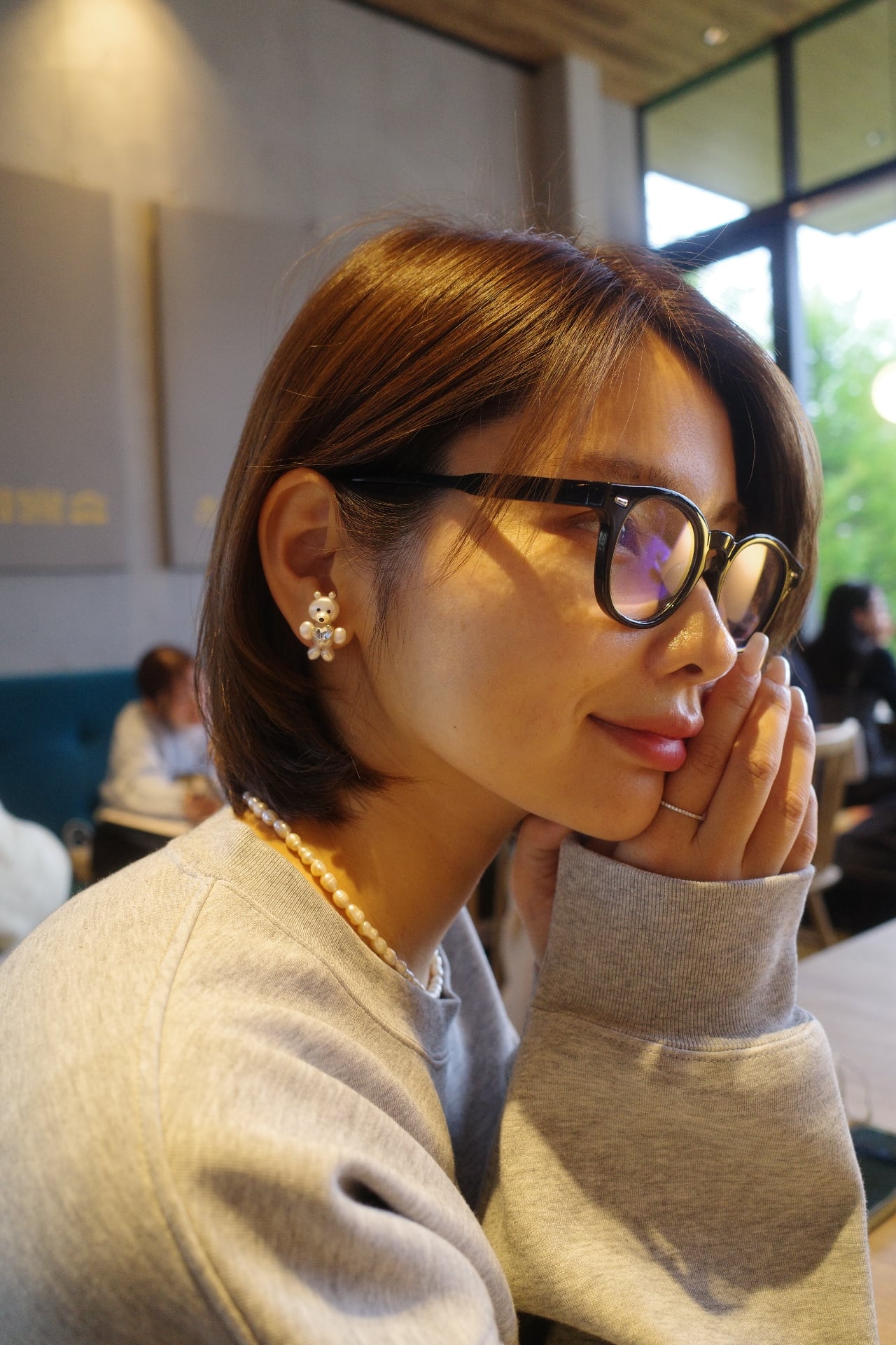 耳飾りはアシンメトリーとなっており、