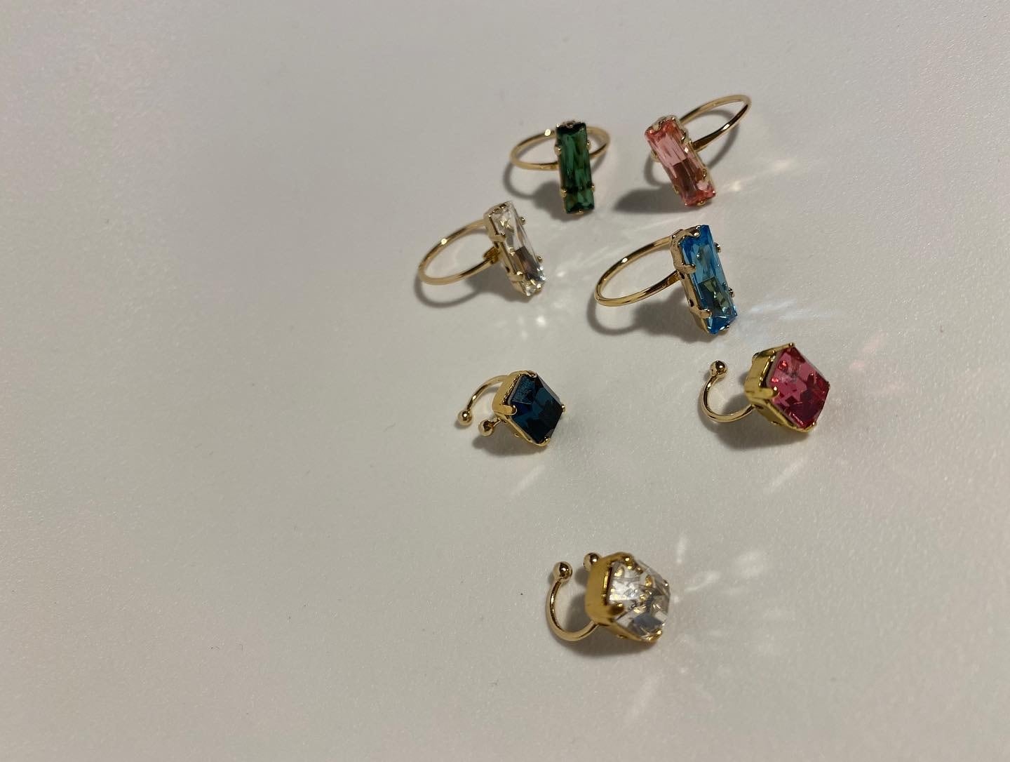 縦に長いスワロフスキーは、 沢山の光を反射してキラキラ輝きます。 指を綺麗に見せてくれる華奢なリング。 サイズ:フリー(11号程度)