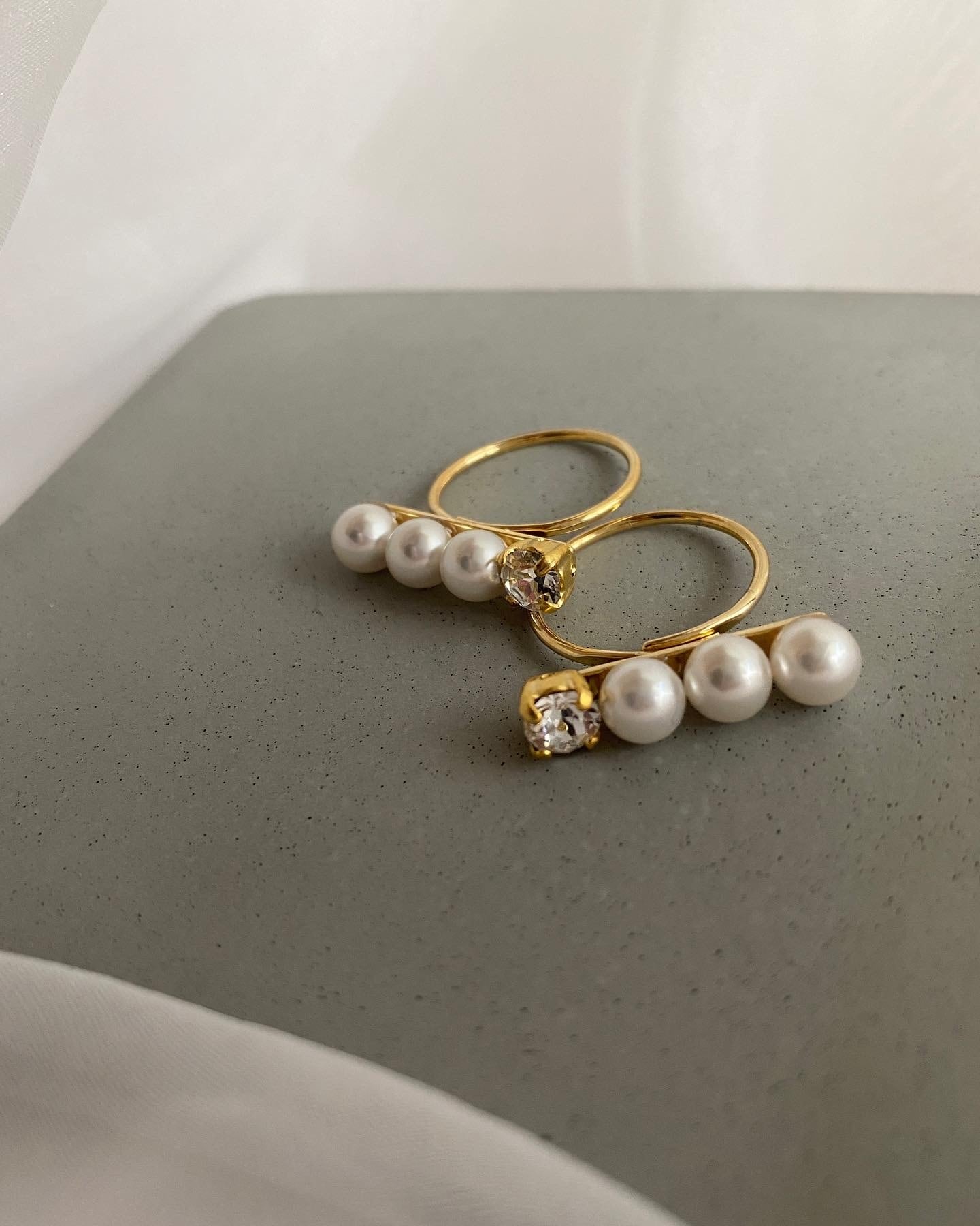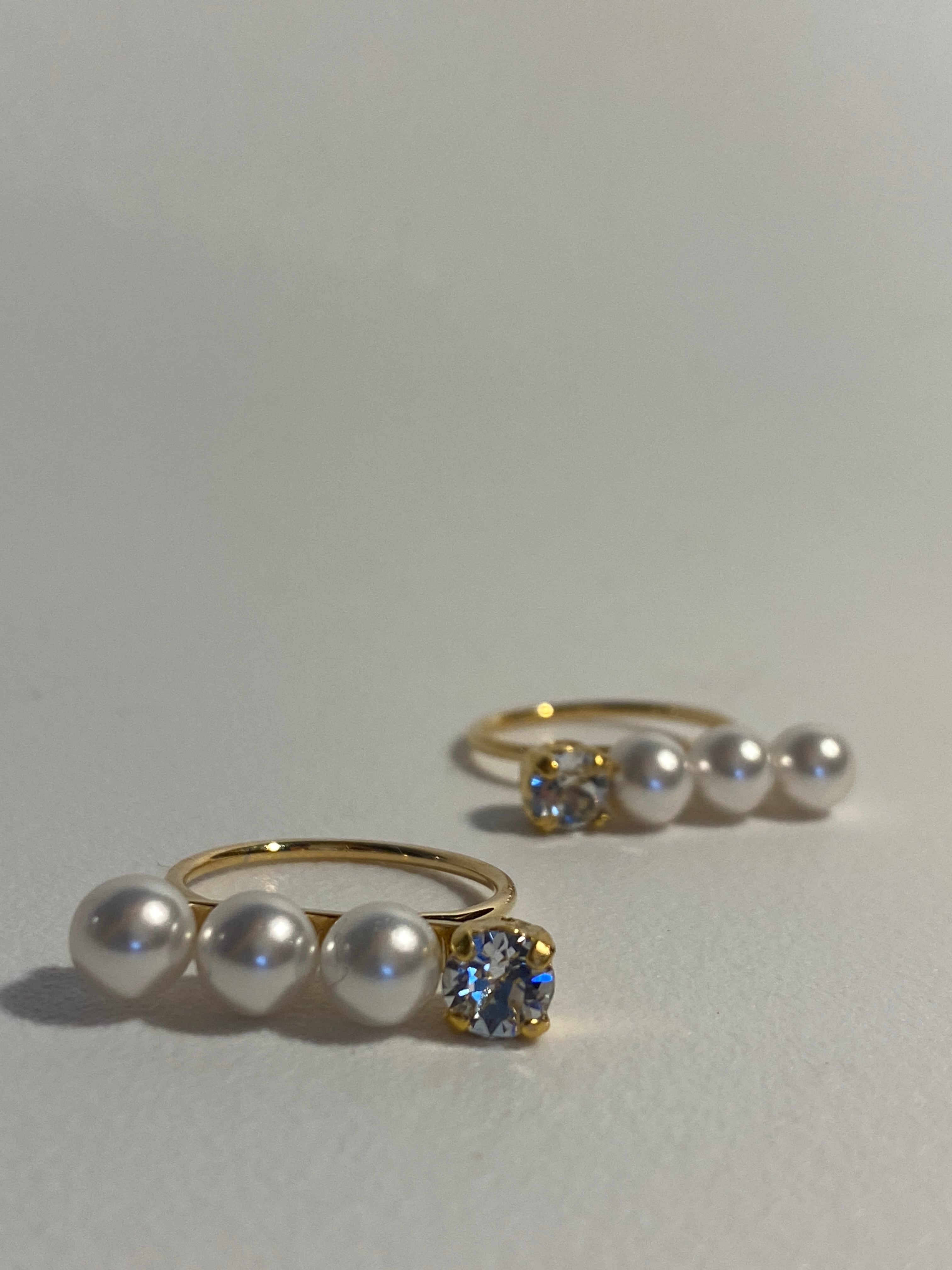 繊細で女性らしいデザインのリング。 端についたスワロフスキーが キラリと手元を飾ります。 フリーサイズ(11号程度)